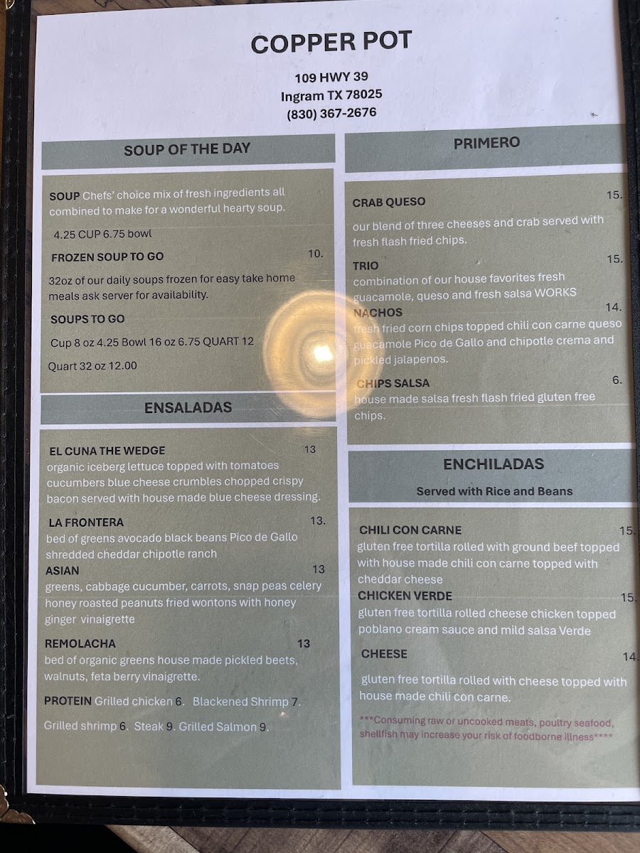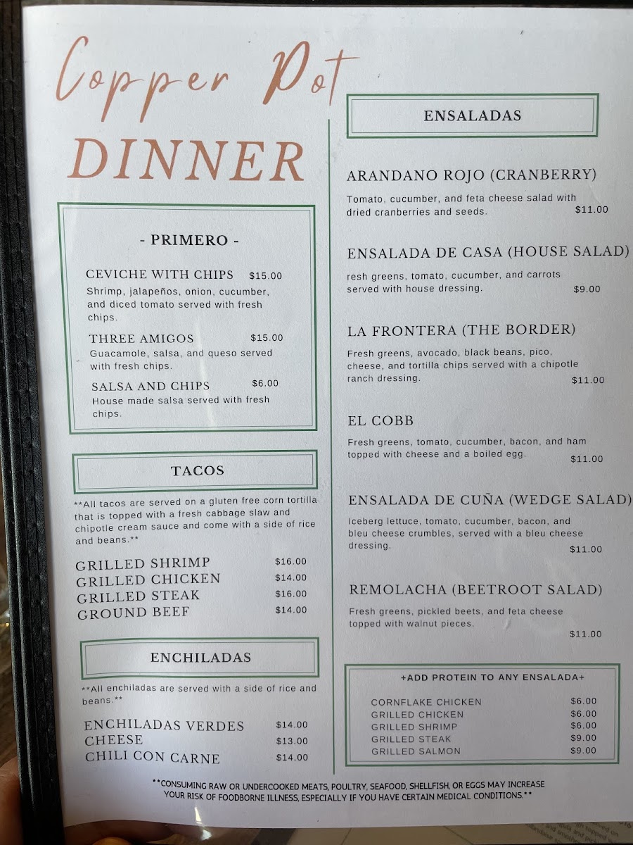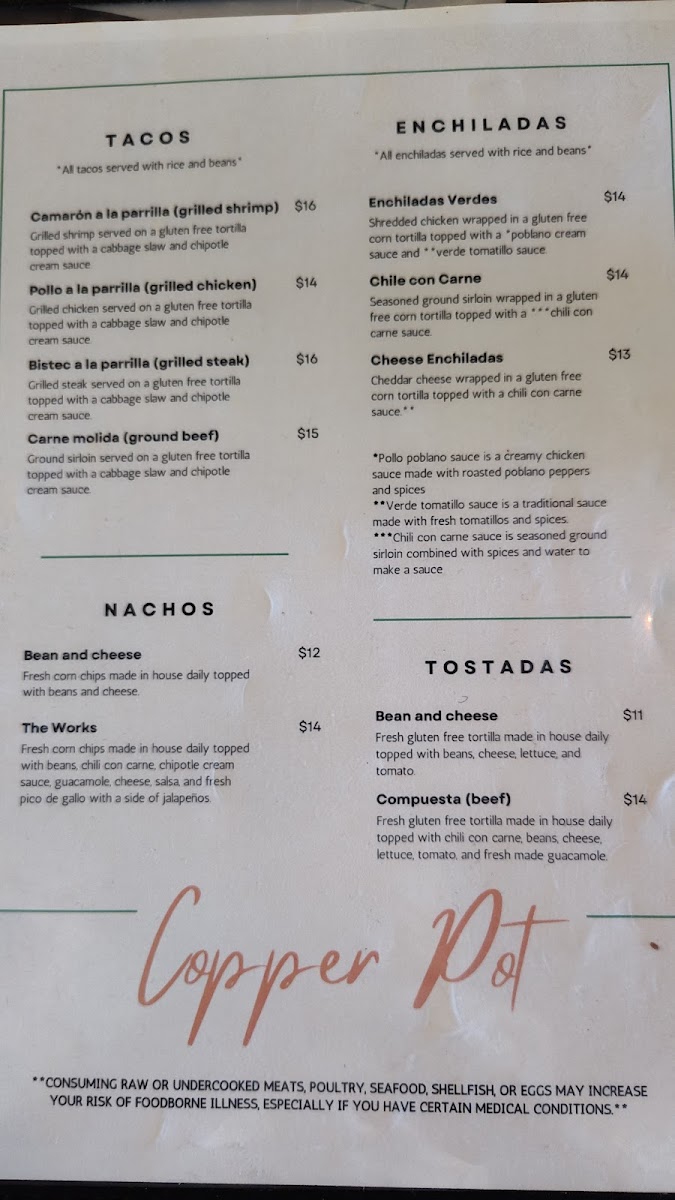 Copper Pot Menu